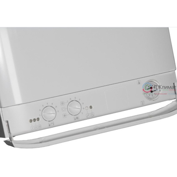 - Панель управления котлом имеет достаточно простую структуру. Тут расположены переключатели режимов времен года, температуры горячего водоснабжения и отопления, манометр, специальный индикатор диагностики поломок, а также кнопка перезапуска продукции.