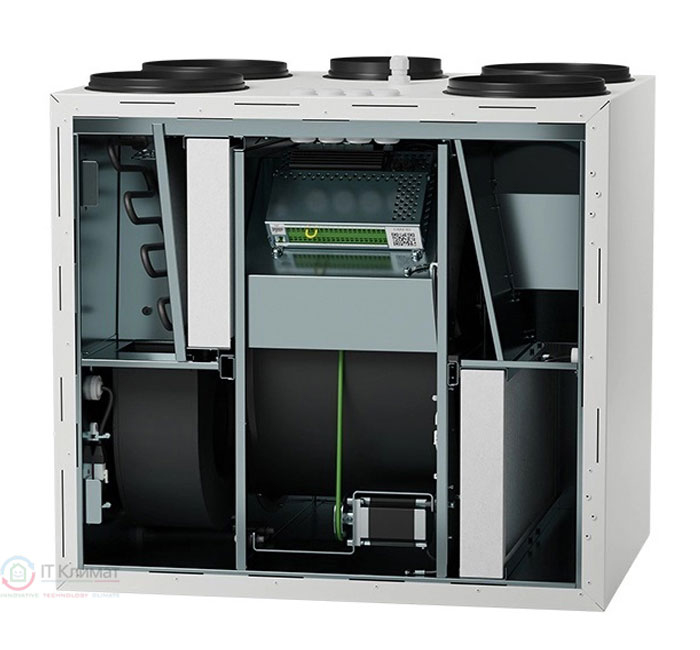 - Конденсаційний роторний рекуператор ефективно рекуперує тепло за низьких температур, підтримує оптимальний мікроклімат у приміщенні, відновлює вологість узимку